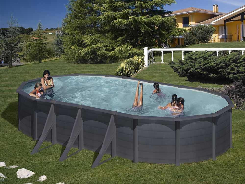 Graphitstahl Gre Ovalbecken – 730x375x120 cm
