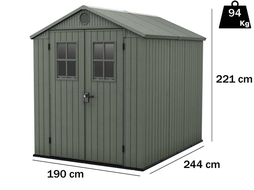 Keter Darwin grün – Gartenhaus – Mit Frontfenstern – 190x244x221 cm