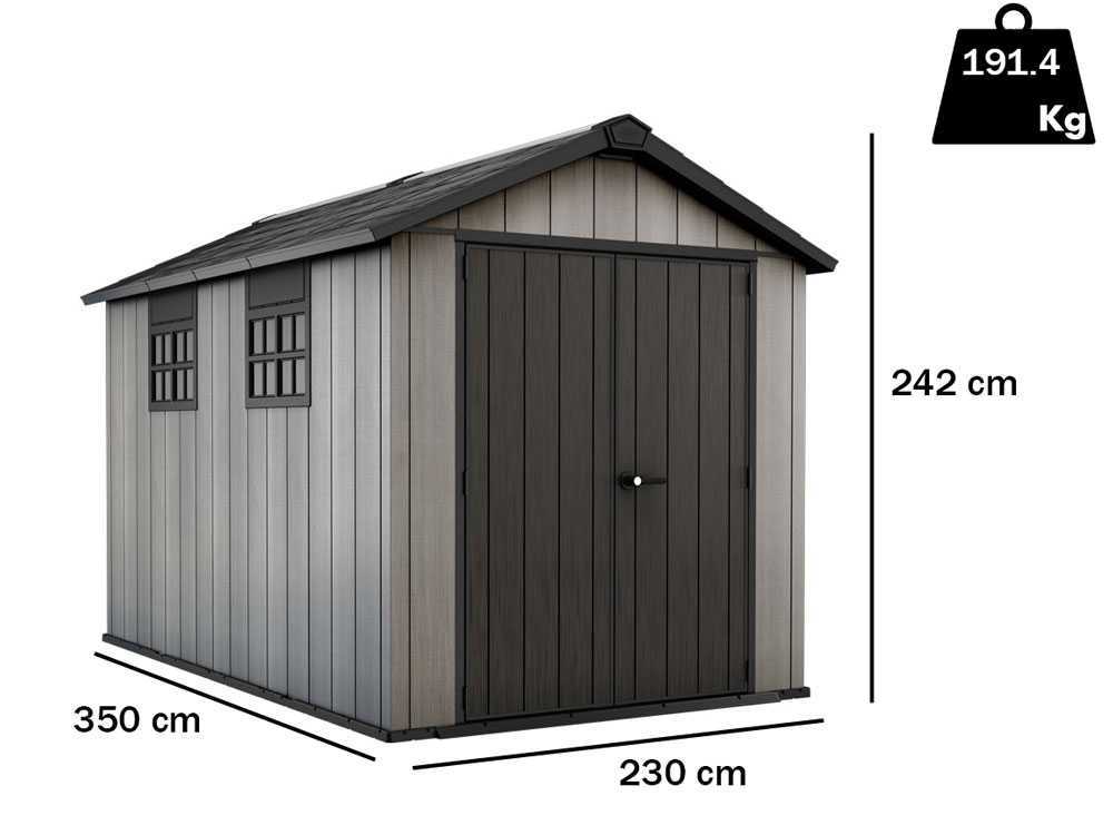 Keter Oakland 7511 – Gartenhaus – mit Doppeltür und Fenster – 230x350x242 cm